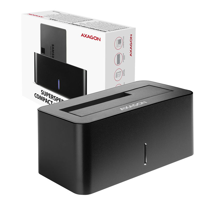 SuperSpeed USB dokovací stanice AXAGON ADSA-SN COMPACT HDD/SSD DOCK připojí k počítači snadno a rychle libovolný SATA disk.