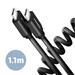 Odolný datový a napájecí kabel s prodlouženou životností je opatřen kovovými koncovkami, konektory s poniklovaným povrchem a pozlacenými kontakty. Vodiče kabelu jsou vyrobené z pocínované bezkyslíkaté mědi. Kvalitní izolace kabelu, vyrobená z flexibilního TPE, zaručuje maximální odolnost, ale zachovává i dostatečnou ohebnost. Díky kroucenému a natahovacímu provedení kabel zabírá minimum místa a je tak ideálním doplňkem do auta. Ve zkráceném stavu je kabel dlouhý jen 50 cm a nikde nepřekáží. V nataženém stavu pohodlně dosáhne 110 cm daleko od zásuvky.