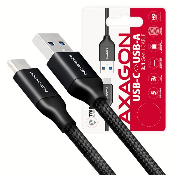 AXAGON BUCM3-AM05B, SUPERSPEED kabel USB-C <-> USB-A 3.2 Gen 1, 0.5m, 3A, oplet, černý