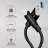 Kvalitní vodiče 22AWG (nižší číslo = větší průřez a nižší odpor vodiče) z pocínované bezkyslíkaté mědi, konektory s pocínovaným povrchem a zlacenými kontakty garantují rychlé nabíjení mobilních zařízení proudem až 3A.