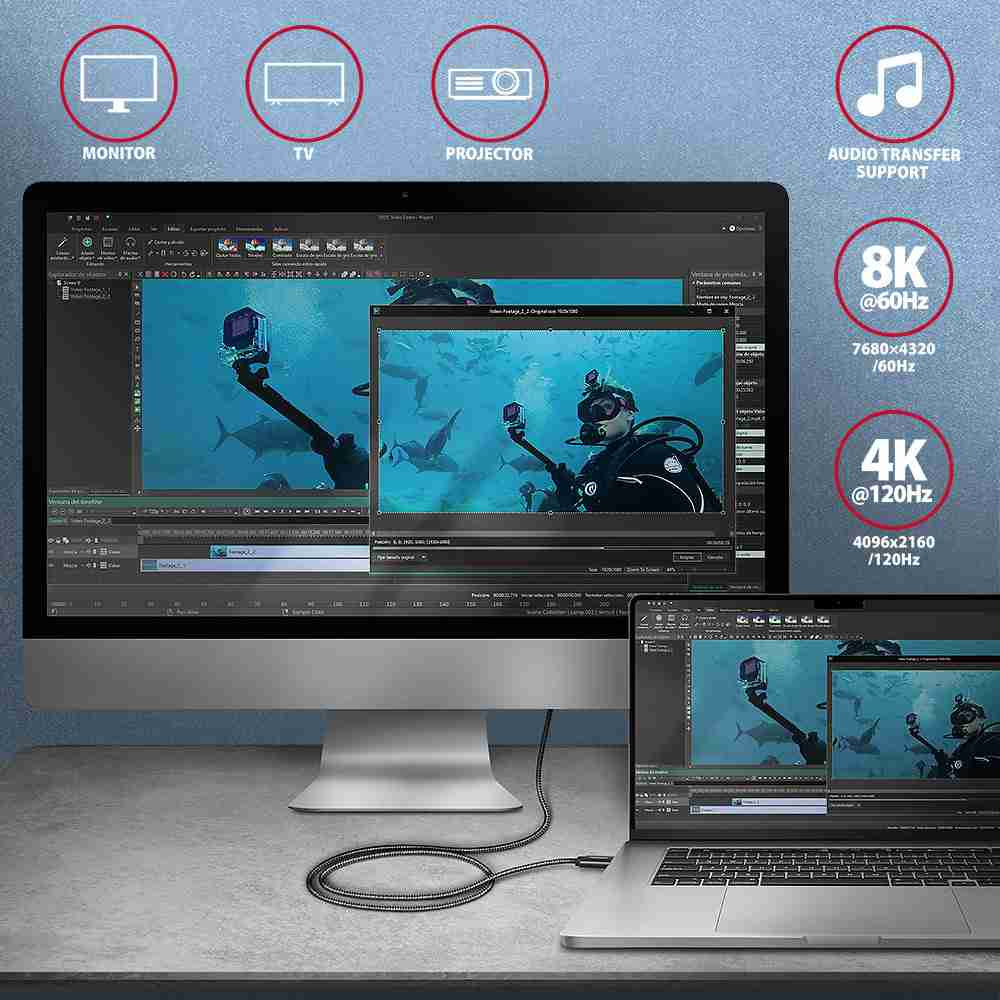 Kabel podporuje přenos dat rychlostí až 40 Gb/s, také umožňuje přenášet obraz až do rozlišení 8K/60Hz Full Ultra HD a zvuk.