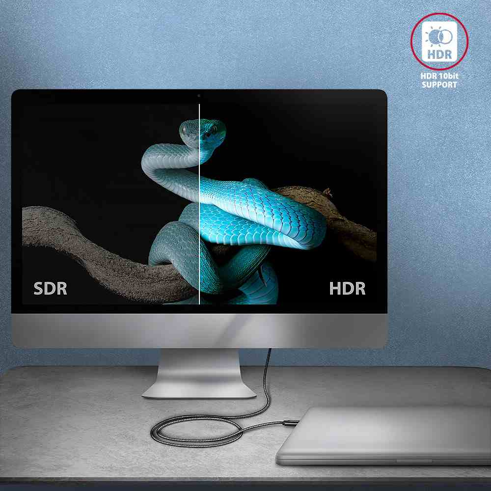 • Podpora protokolu DisplayPort 1.4a, 2.0 pro přenos zvuku a videa až do rozlišení Full Ultra HD 8K@60Hz, HDR10 - je nutný USB-C port s podporou DisplayPort Alternate Mode (DP Alt Mode) nebo Thunderbolt 3/4 port.