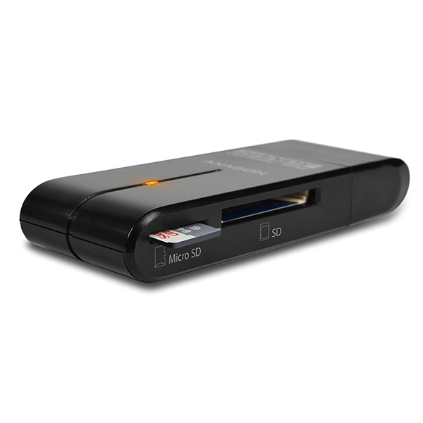 Mini čtečka AXAGON CRE-D4B HANDY pro snadné čtení a zápis nejpopulárnějších formátů paměťových karet, které jsou nejčastěji použity v digitálních fotoaparátech, kamerách a chytrých telefonech.