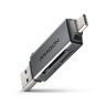 AXAGON CRE-DAC, USB-C + USB-A, 5 Gbps - MINI čtečka karet, 2-slot & lun SD/microSD, podpora UHS-I