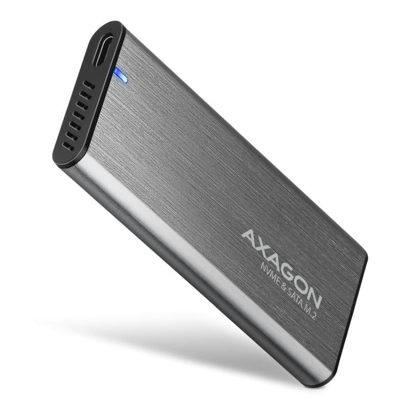 AXAGON EEM2-SG2, USB-C 3.2 Gen 2 - M.2 NVMe & SATA SSD kovový RAW box, bezšroubkový, stříbrný
