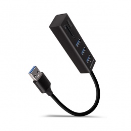 AXAGON HMA-CR3A, USB 3.2 Gen 1 hub, porty 3x USB-A + čtečka karet SD/microSD, kovový, kabel USB-A 20