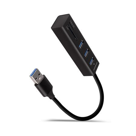 AXAGON HMA-CR3A, USB 3.2 Gen 1 hub, porty 3x USB-A + čtečka karet SD/microSD, kovový, kabel USB-A 20cm