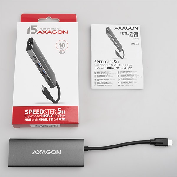 Multiportový USB-C 10Gbps AXAGON HMC-5G2 SPEEDSTER 5in1 hub rozšíří Váš notebook, počítač nebo telefon o pětici portů. Přes oboustranný USB-C konektor snadno a rychle připojíte k počítači monitor a tři USB zařízení současně. Zároveň získáte možnost napájení notebooku pomocí technologie Power Delivery. Replikátor portů vám tak poskytne jednoduchou a skladnou dokovací stanici 5v1 nejen k Windows notebookům ale i Apple notebookům jako je například MacBook Air nebo MacBook Pro.
