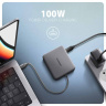 USB-C konektor je vyhrazen pouze pro napájení a současné dobíjení notebooků pomocí technologie Power Delivery 3.0 výkonem až 100W. Do hubu zapojíte USB-C Power Delivery nabíječku a hub připojíte k notebooku. Tím také uvolníte jeden USB-C port. Podmínkou je notebook s podporou nabíjení z USB-C portu pomocí Power Delivery a vhodná PD nabíječka.