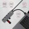 Každý USB port lze vypnout / zapnout pomocí tlačítka. Lze tak snadno odpojovat nepotřebná zařízení bez nutnosti jejich odpojování z USB hubu. Každý USB-A port má modrou LED indikaci zapnutí / vypnutí portu. Po zapojení hubu všechny LED svítí = porty jsou zapnuté, LED nesvítí = port je vypnutý.