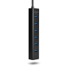 7-portový USB 3.0 hub AXAGON HUE-SA7BP ALU CHARGING s vlastním napájením a podporou rychlonabíjení na všech USB portech. Kompaktní rozbočovač s odolným hliníkovým pláštěm připojí k počítači až sedm USB zařízení současně. Napevno uchycený USB kabel dostatečné délky 40 cm ideální pro použití s notebooky.