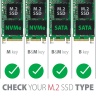 Adaptér podporuje použití B-key SATA i M-key NVMe (PCI-Express) M.2 SSD disků, jednostranných i oboustranných. Redukce nemá omezení kapacity SSD disků a lze použít M.2 karty všech rozměrů až do délky 110 mm. Samozřejmostí je fungování obou disků zároveň.