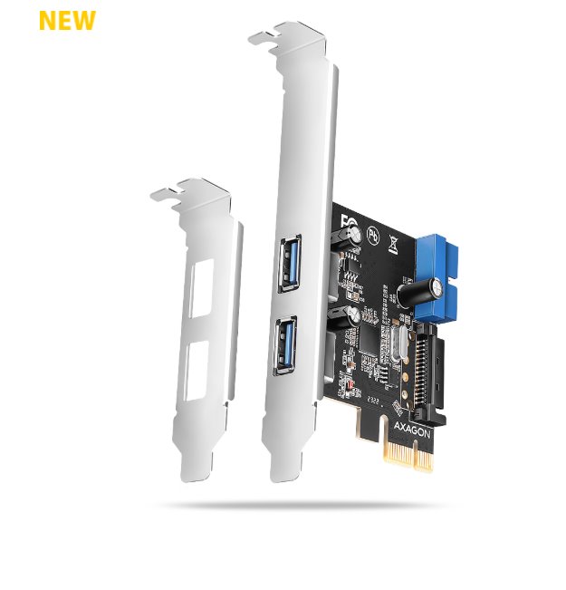 AXAGON PCEU-232RS, PCIe řadič, 2+2x USB 5Gbps port, SATA napájení, Renesas PD720201, SP & LP