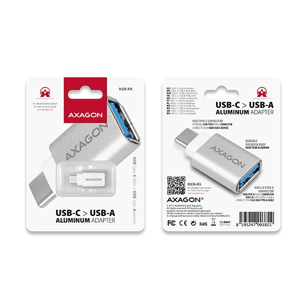 USB-C -> USB-A redukce AXAGON RUCM-AFA připojí stávající zařízení s USB Type A konektorem k novému zařízení s moderním USB Type C rozhraním.