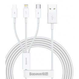 Baseus CAMLTYS-02 Superior Fast Charging Datový Kabel 3v1 USB-C, Lightning, MicroUSB 1.5m White