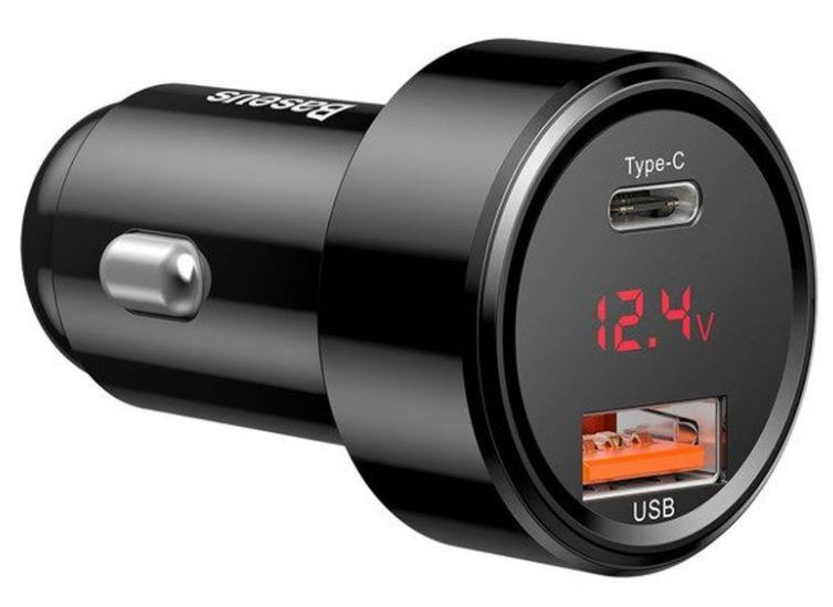 Baseus nabíječka do auta Magic USB-C PD, USB-A 45W s displejem černá
