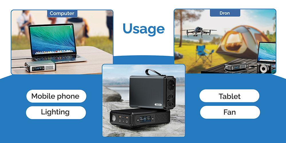 *Univerzální použití díky různým výstupům (USB-C, USB-A, DC jack 5521, AC230V)