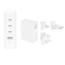 Belkin BOOST CHARGE™ 140W 4-portová USB-C Power Delivery GaN PPS nástěnná nabíječka + UK, EU, US adaptéry, bílá