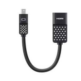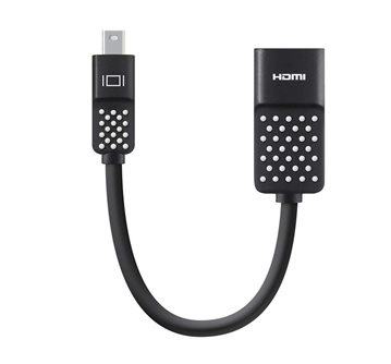 The Mini DisplayPort to HDTV Adapter lets you stream high-quality A/V content rom your laptop or tablet to your HDTV. Use it in conjunction with an HDMI cable (sold separately) to watch movies, share photos, or expand your workstation with a mirrored desktop.