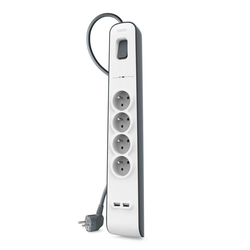 Belkin přepěťová ochrana BSV401 - 4-zásuvka, 2xUSB/2.4A, 2m