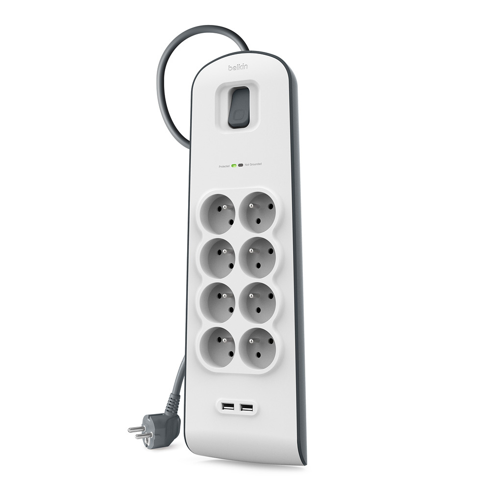 Belkin přepěťová ochrana BSV804 - 8-zásuvka, 2xUSB/2.4A, 2m
