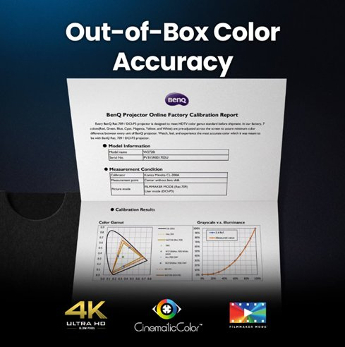 Dodává se s individuální zprávou o kalibraci z výroby, která zajišťuje 100% přesnost barev Rec.709 s Delta E<3.