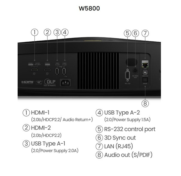 BenQ DLP Projektor W5800 3D 4K UHD(3840x2160)/2600 ANSI lm/1,52 ~ 2,45/2,5M:1/2xHDMI/RJ45/USB/