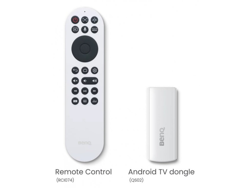 Součástí balení je dálkový ovladač (včetně baterií) a modul QS02 s Android TV.