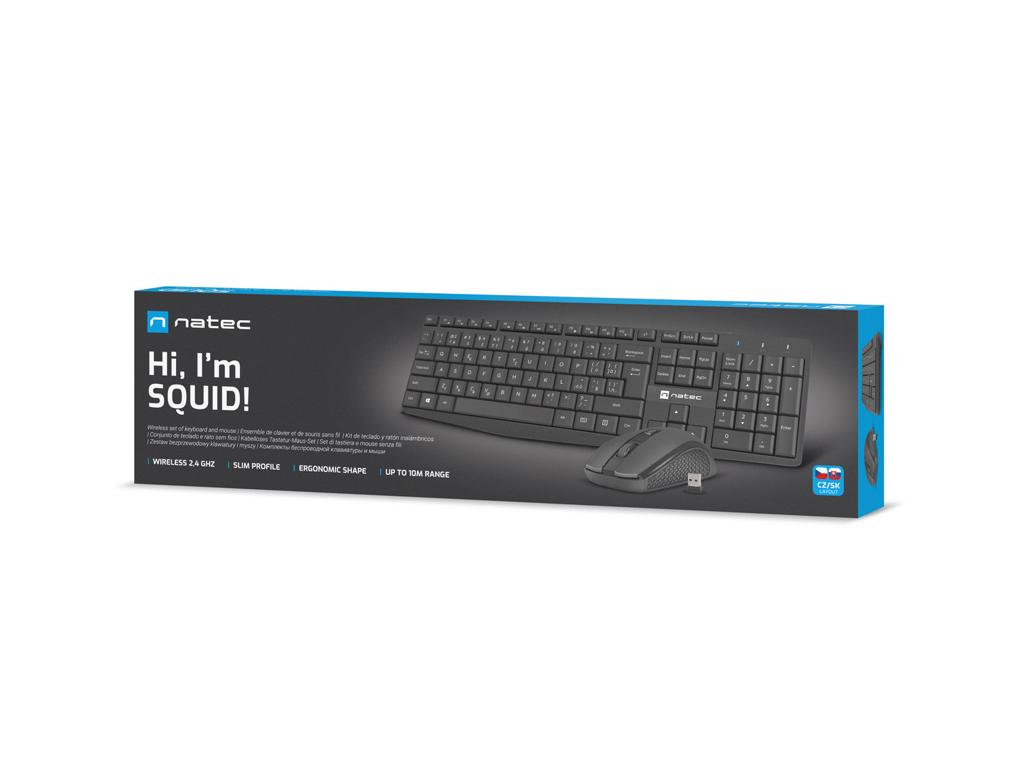Obě zařízení umožňují 2,4GHz bezdrátovou komunikaci s počítačem. Díky tomu můžete sadu Natec Squid používat ve vzdálenosti až 10 metrů od podporovaného zařízení. Myš je navíc vybavena speciálním úložným prostorem pro USB přijímač, takže se nemusíte bát, že byste jej na cestách ztratili.