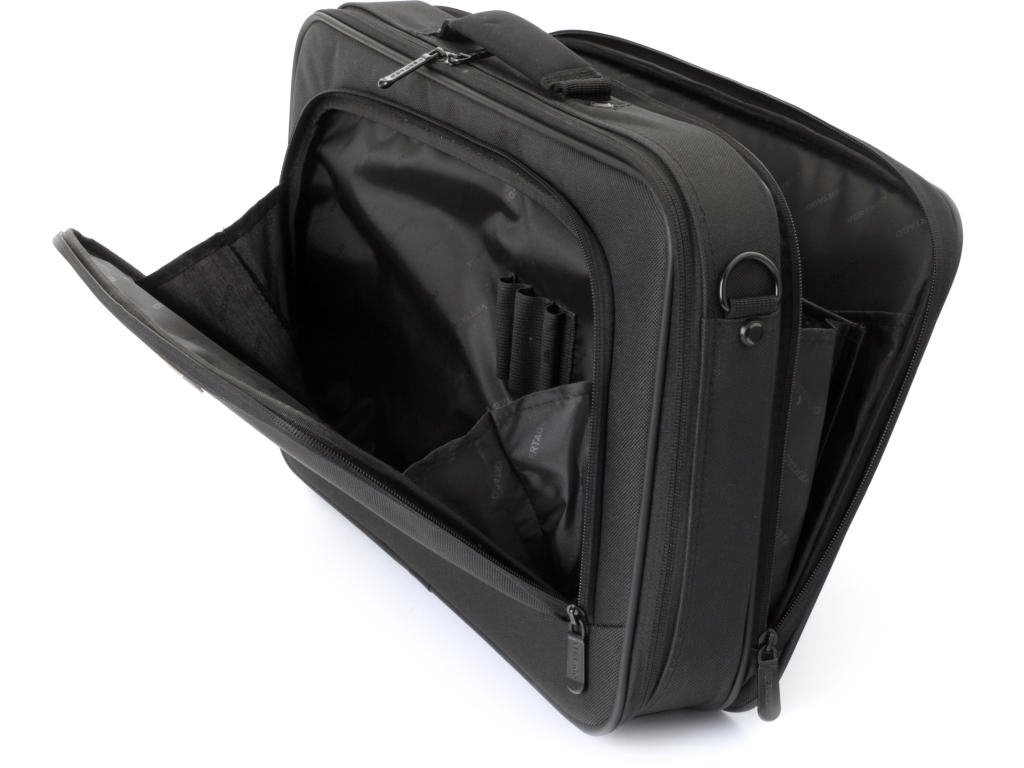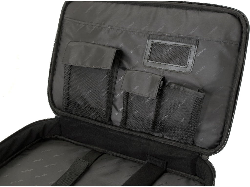 Brašna má dostatek kapes pro příslušenství, přední kapsu na zip, systém na troley kufřík, nastavitelný popruh a kovové karabiny.
