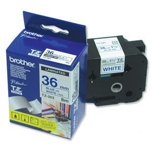 Originální kazeta s laminovanou páskou TZe-263 kompatibilní s širokou řadou tiskáren Brother P-touch je zvláště všestranná díky své snadno čitelné modré a bílé barvě - ideální pro domácnost, kancelář a další pracoviště.