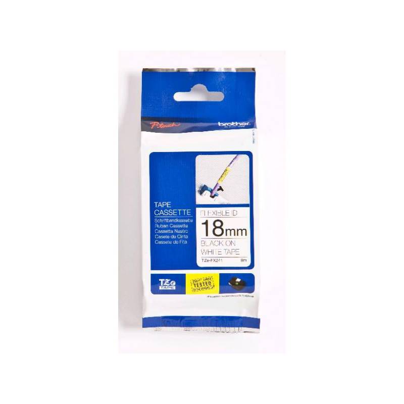 Brother - TZe-FX241,  bílá / černá, 18 mm,  s flexibilní páskou