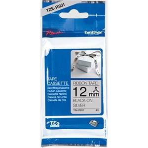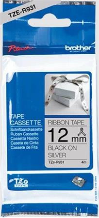 Brother - TZe-R931 stříbrná / černá (12mm, 4m, textilní)