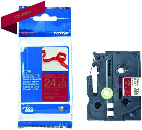 Brother - TZe-RN54 vínově červená / zlatá (24mm, 4m, textilní)