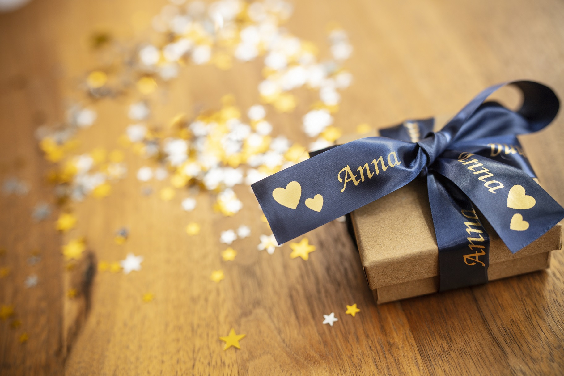 Vložte svou osobnost do karet a dárků použitím pásky Brother TZe-RN54 se zlatým tiskem na tmavě modrém podkladu. Ať už se jedná o zvláštní příležitost, nebo si jen chcete přidat něco navíc jako vklad své osoby, tyto luxusní textilní stuhy vám poskytují nejlepší způsob, jak ozdobit dárky.