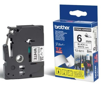 Brother - TZe-S211 bílá / černá (6mm,lamin.,extrémně adhez.)