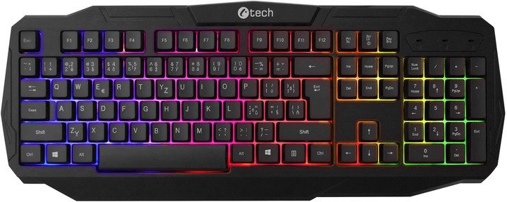 ARCUS je novou herní klávesnicí značky C-TECH, která vyniká moderním a neotřelým designem a svým podsvícením v barvách duhy. Klávesnice je určena především pro hráče a ja navržena tak, aby vydržela opravdu dlouho. Samozřejmostí je česko-slovenský layout.