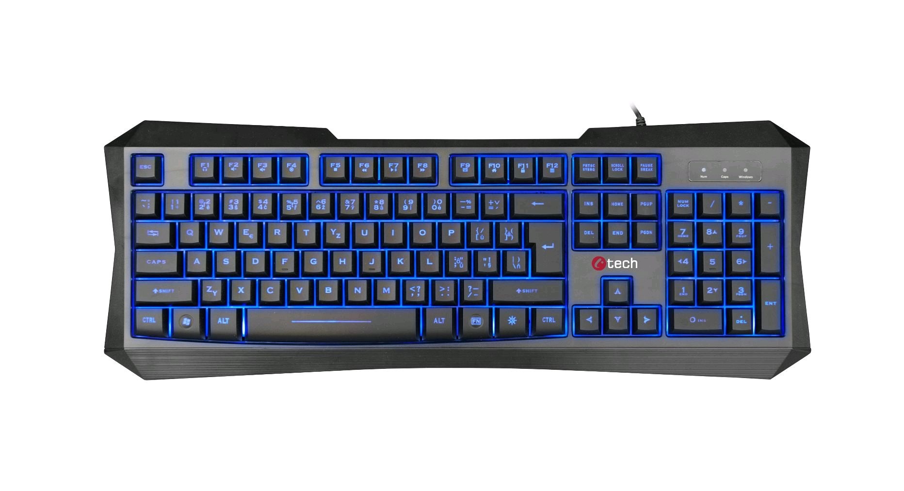 NEREUS je novou herní klávesnicí značky C-TECH, která nabízí plně podsvícené klávesy s možností volby 3 barev podsvícení. Elegantní podsvícení je možno přepínat nebo vypnout pomocí speciální klávesy. Technologie speciálně navržených membrán garantuje klávesnice velmi vysokou životnost a rychlou odezvu při hraní her. Samozřejmostí je česko-slovenský layout.