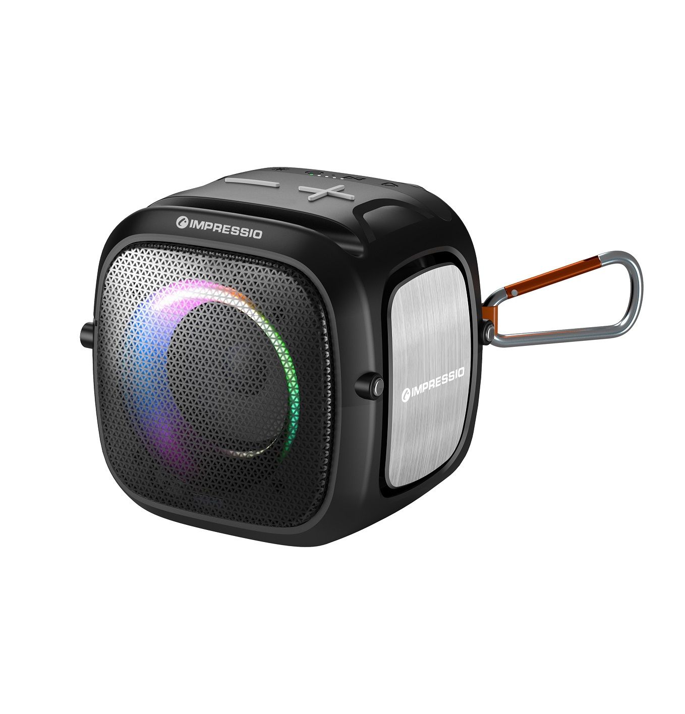 Impressio Qubis Mini je vybaven odolností IPX6, což znamená, že je odolný proti stříkající vodě a dešti. To znamená, že můžete hudbu poslouchat i venku, aniž byste se báli, že by se mohl poškodit. A pro ty, kteří chtějí vytvořit náladu, nabízí tento reproduktor RGS světelné efekty, které dodají vašim večerům další rozměr.