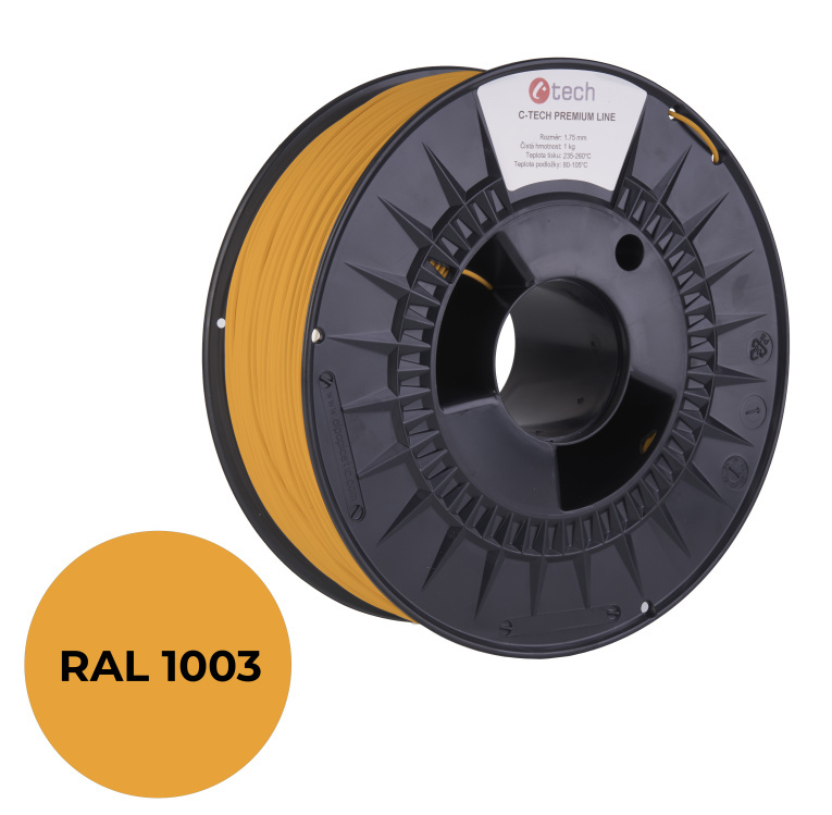 C-TECH tisková struna PREMIUM LINE ( filament ) , PETG,signální žlutá, RAL1003, 1,75mm, 1kg