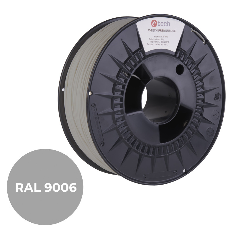 C-TECH tisková struna PREMIUM LINE ( filament ) , PLA, bílý hliník, RAL9006, 1,75mm, 1kg