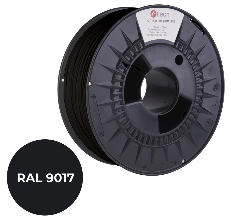 C-TECH tisková struna PREMIUM LINE ( filament ) , PLA, dopravní černá, RAL9017, 1,75mm, 1kg