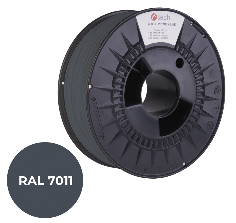 C-TECH tisková struna PREMIUM LINE ( filament ) , PLA, ocelová šedá, RAL7011, 1,75mm, 1kg