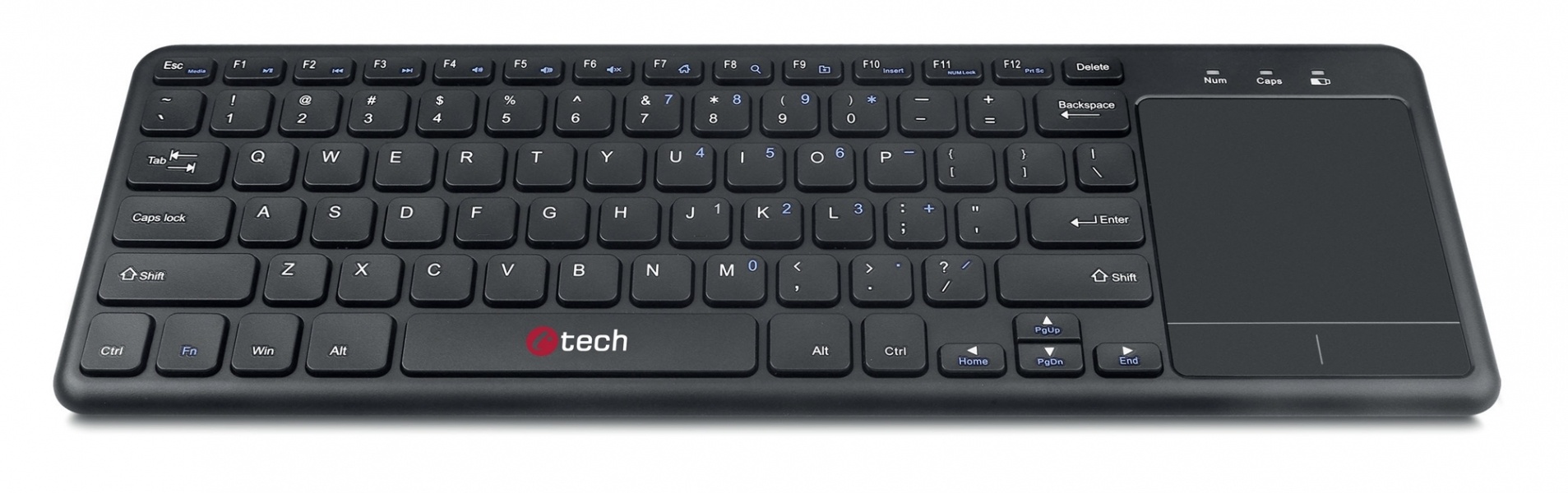 Bezdrátová klávesnice s touchpadem C-TECH WLTK-01 je ideálním řešením pro Váš obývací pokoj. Klávesnice je kompatibilní s většinou smartTV, Android, Chrome OS a Windows, čili Vám garantuje velmi pohodlnou obsluhu všech Vašich multimediálních zařízení. Klávesnice má plnou českou, i slovenskou lokalizaci. Pro ještě větsí pohodlí při užívání WLTK-01 Vám poslouží sada multimediálních kláves, multi-touch touchpad, kompaktní rozměry a malá hmotnost klávesnice.