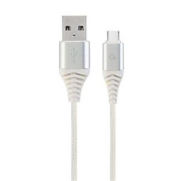 GEMBIRD CABLEXPERT Kabel USB 2.0 AM na Type-C kabel (AM/CM), 1m, opletený, bílo-strříbrný, blister, PREMIUM QUALITY