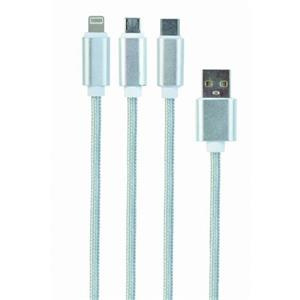 GEMBIRD CABLEXPERT Kabel USB A Male/Micro USB + Type-C + Lightning, 1m, opletený, stříbrný, blister