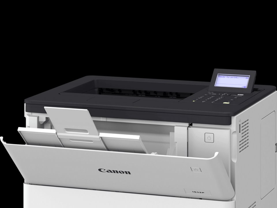 Tiskárna A4, 43 tisků/min černobíle,  síťová tiskárna (UFR II / PCL a Adobe PS3), standardně 1 kazeta (550 listů + 100),  duplex, USB.