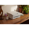 Díky efektivnímu a prostorově úspornému designu mohou být naše domácí tiskárny uloženy na policích nebo stolech, a není nutné, aby byly přístupné zezadu. Užijte si čistší a čitelnější výtisky díky inteligentnímu rozmístění bodů a optimalizaci inkoustu prostřednictvím našeho systému kazet FINE a aktualizovaného pigmentového černého inkoustu. Ať už tisknete jakkoli, užijte si bezproblémový provoz díky kombinaci stabilního dvoupásmového Wi-Fi připojení (2,4 GHz/ 5 GHz) a jeho jednoduchého nastavení prostřednictvím QR kódu.