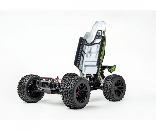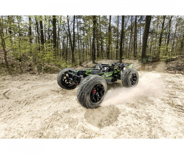 Písečná buggy na dálkové ovládání Virus Extreme 1:8RC Buggy Virus Extreme není jen dalším modelem na trhu, je to dokonalá kombinace rychlosti, kontroly a vzrušení. Pokud hledáte adrenalin, výkon a hodiny nekonečné zábavy, neexistuje lepší volba. Tento model posouvá svět RC závodění na novou úroveň.RC model pro milovníky rychlé jízdyRC Buggy Virus Extreme je nejenom hračka, je to vstupenka do světa rychlosti, adrenalinu a technologické dokonalosti. Díky výkonnému motoru 2000 Kv s hliníkovým chladičem a 17kg servo řízení s kovovou převodovkou nabízí Virus Extreme nejen vynikající rychlost, ale i přesné ovládání a stabilní jízdu na každém povrchu. S modelem dokážete dosáhnout rychlosti až 70 km/h.Jízda po zadních kolechModel disponuje unikátní funkcí wheelie, která umožňuje vozidlu jezdit na zadních kolech, přidává na atraktivitě a umožní vám předvést úchvatné kousky. Model je ovládán vysílačem na frekvenci 2,4 GHz (s dosahem 150 metrů), můžete tedy jezdit s více modely najednou a nebudou se vám vzájemně rušit. Závodění tedy může začít!Balení v RTR verziTento model má v balení vše, co potřebujete pro start. Samotný model, dvojici LiPo baterií 7,4 V 4 000 mAh, USB nabíječku, vysílač i baterie do vysílače. Obsah balení: Kompletně sestavený model 4WD 2,4GHz dálkové ovládání 2x baterie Li-Po 7,4 V / 4000 mAh Nabíječka 4x baterie AA do vysílače Technické parametry: Měřítko: 1/8 Konstrukce auta: buggy Délka auta: 60 Šířka auta: 43 Výška auta: 24 Hmotnost auta: 4844 Auto je vhodné na ven: ano Barva: zelená Auto je vhodné do interiéru: ano Rychlost auta: 70 Kapacita akumulátoru v autě: 4000 Napětí akumulátoru v autě: 7.4 Typ akumulátoru do auta: Li-Po Typ nabíječky: 230V Výměnný akumulátor v autě: ano Napájení ovladače k autu: 4xAA Doba jízdy auta: 8 Dosah ovládání auta: 150 Frekvence ovládání RC auta: 2,4Ghz Konstrukce ovladače k autu: Pistolový Plynulá regulace rychlosti: ano Plynulá řízení zatáčení: ano