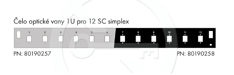 FP2-1U-12SCS-BČelo optické vany 1U pro 12 SC simplex/LC duplex/E2000 BK s montážními otvory v2 FP2-1U-12SCS-B